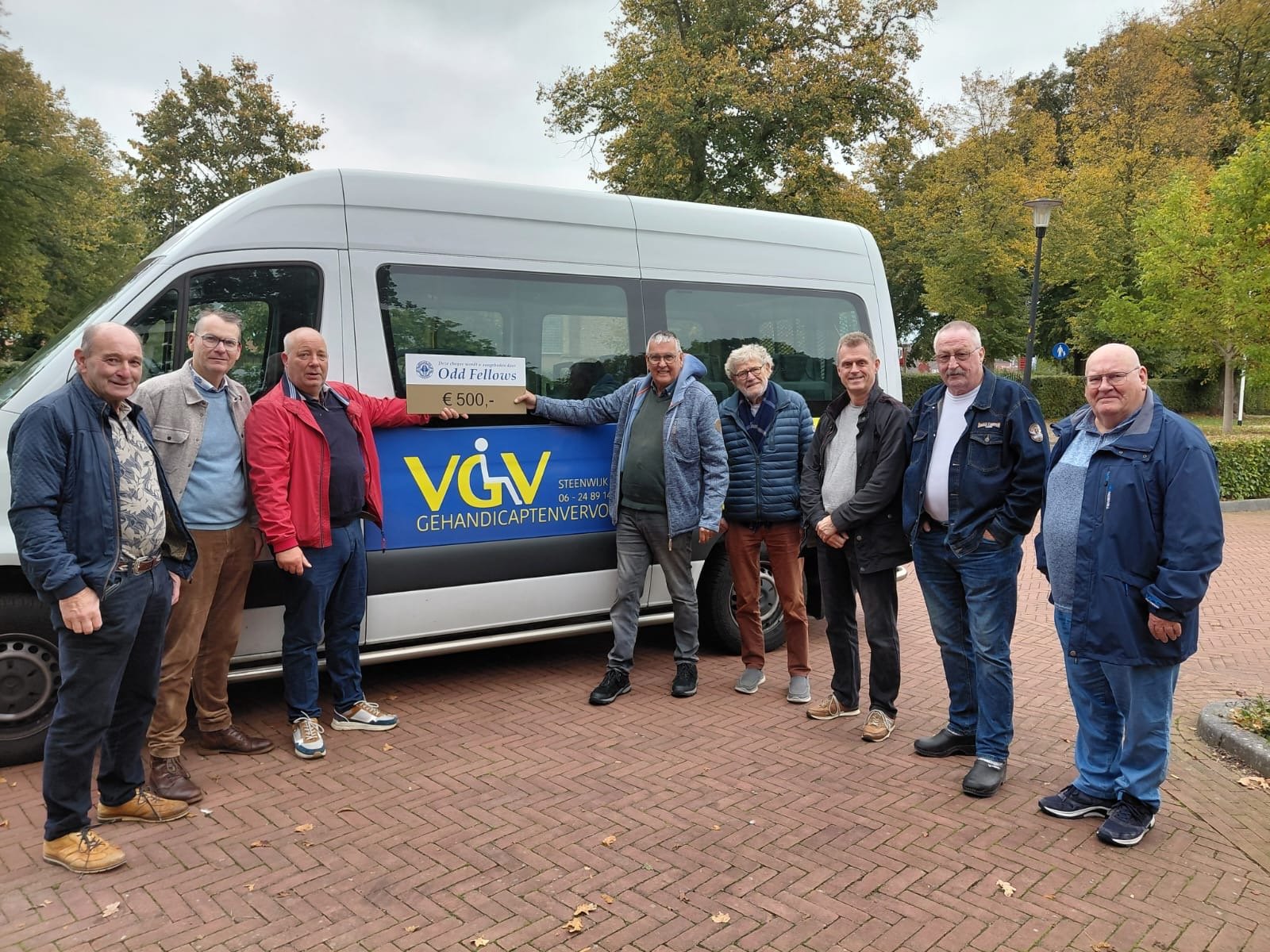 De check werd namens de Odd Fellows door Michiel Draaisma en onze voorzitter overhandigd. Op deze manier proberen wij de kosten voor het vervoer zo laag mogelijk te houden.